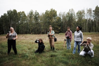 Latem uczyliśmy się patrzeć na świat inaczej, bo przez obiektyw aparatu. Michał Wąsik pokazał nam, jak złapać kadr, jak ustawić światło i jak opowiedzieć historię jednym ujęciem. Puszcza Kozienicka stała się planem zdjęciowym. Zamiast tylko spacerować, zaczęliśmy dostrzegać szczegóły takie jak krople rosy na pajęczynie, słoje na starym pniu, zmarszczki na twarzy sąsiadki. Ćwiczyliśmy kadrowanie, pracę ze światłem i rejestrowanie dźwięku. Poznawaliśmy podstawy obróbki zdjęć i montażu. Pracowaliśmy na statywach, ze stabilizatorem i mikrofonem. Zbieraliśmy ujęcia do filmu i do publikacji.
