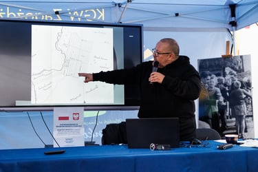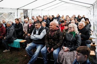 Jesienią, w październiku, przyszła kolej na historię. Dr Sebastian Piątkowski opowiadał o historii regionu i naszej wsi, o tym, co było, o ludziach, których już nie ma. Usłyszeliśmy o dawnej własności ziemi, o dworze, o pracy na folwarku i o przemianach po uwłaszczeniu. Jego słowa stały się inspiracją do zbierania kolejnych wspomnień. W głowach układały się pytania, które mieliśmy zadać podczas wywiadów z seniorami. Dzięki temu wykładowi rozdział historyczny naszej książki zyskał mocne podstawy.