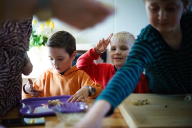 Staramy się, aby dzieci jak najczęściej uczestniczyły w naszych działaniach. Włączamy je w lepienie pierogów, krojenie warzyw do sałatki, ozdabianie pierników, malowanie pisanek. Wspólne przebywanie, rozmowy, to nauka szacunku do siebie nawzajem. Wierzymy, że słuchając naszych rozmów, czerpią z nich wszystko to, co dobre.