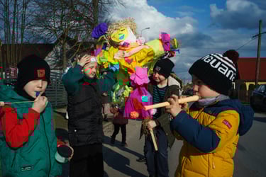 Topienie Marzanny to jedna z najpiękniejszych wiosennych tradycji w Janusznie. Dzieci z pomocą rodziców przygotowują kukłę Marzanny, symbol zimy. Ozdabiają ją kolorowymi wstążkami i bibułą. Potem wesoły korowód rusza nad rzekę Zagożdżonkę. Wspólnym śpiewem i śmiechem żegnamy zimę, a wrzucając Marzannę do wody, witamy wiosnę. To wydarzenie pełne radości i wspólnoty, podczas którego dzieci uczą się tradycji i odkrywają piękno natury. Wracamy przez łąki, a w powietrzu czuć pierwsze ciepło i zapach mokrej trawy.