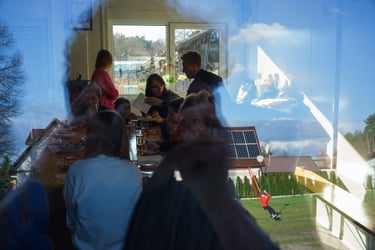 Adwent i Wigilia zamykają krąg. Wraz z początkiem Adwentu zapalamy pierwszą świecę w wieńcu, który przygotowaliśmy z gałązek, mchu i szyszek zebranych podczas ostatniego w sezonie grzybobrania. Ważnym elementem przygotowań do Bożego Narodzenia jest pieczenie pierniczków. To chwile pełne radości i śmiechu: jedni wałkują ciasto, inni wykrawają kształty gwiazdek, serduszek czy aniołków, a białym lukrem malujemy wzory. W całej świetlicy unosi się zapach miodu i korzennych przypraw, który wprowadza wszystkich w świąteczny nastrój.