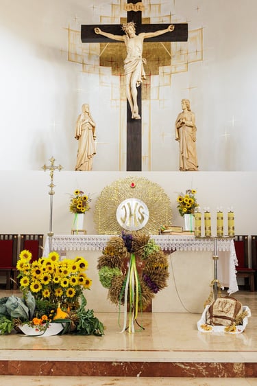 Miesiąc sierpień to czas podziękowania Bogu za plony. Aby zrobić wieniec na dożynki, wcześniej ręcznie ścinamy i suszymy różne rodzaje zbóż. Z kłosów, ziół i kwiatów powstaje koło, które przypomina o nieustannym odradzaniu się i przemijaniu, a także symbolizuje nieprzerwany cykl urodzaju. Wieniec niesiemy do kościoła w uroczystość Wniebowzięcia Najświętszej Maryi Panny. W naszej okolicy ten dzień nazywa się Matki Boskiej Zielnej. Zbóż na polach jest mniej niż dawniej, ale szacunek do chleba nie zniknął. Dożynkowy wieniec jest formą podziękowania dla pracy rąk, dla pogody, która dopisała, dla sąsiadów, którzy pomagali. Oprócz wieńca w kościele święcimy plony z naszych ogrodów i sadów oraz chleb, aby nigdy go nie zabrakło na naszych stołach.
